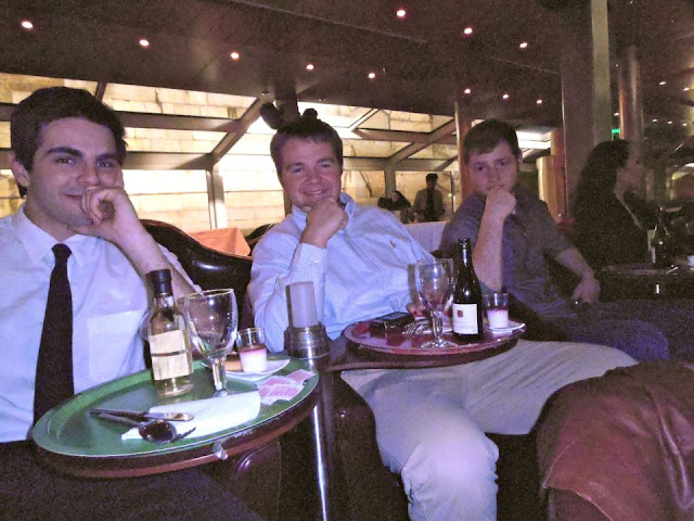 To start, we left the college on Thursday at 7:30 in the morning. That's quite early here as our classes usually don't even start until nine. We took the charter bus to Nice to catch our plane which left a little after ten so we ended up in Paris around noon. That particular day was the only one that the sun actually came out but that's to be expected. Our first stop was Notre Dame which has got to be one of the coolest church's I've ever seen, inside and out. Afterwards, we went to the hotel to get our rooms and drop off our things before having quite a bit of free time before dinner. With it, my friends Maxzene, Rachel, and myself went to find one of the world most famous macaroon shops (so I was told); the name was Laduree and they were amazing. Next we went in search of one of Maxzene's friends who worked at a fast food joint; we ended up getting free crepes. Afterwards, I ended up going back to the hotel to get a much needed siesta before heading out for supper. That night was especially unique because we had it on a 'Restaurant Boat' as described by my roommate Nick. It took us down the river and past the Eiffel Tour as well as quite a few other monuments. Not the best picture but it's still not bad: